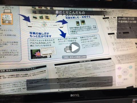 テレビ接続されたおもいでばこにより、大画面で写真を楽しむことができます。