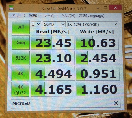 内蔵は思ったより早いですね。MicroSDはお察し速度・・・。