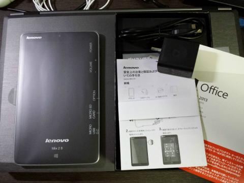 本体、手引き、OfficePersonal、ACアダプタ、USBケーブルです。