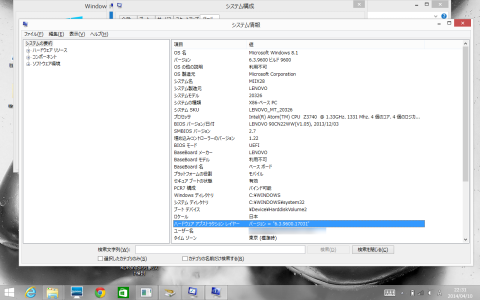 手の中でWindowsが起動してきました。タブレットといえば、iOSやAndroidを想像していましたが、Windows8.1が動いてます。