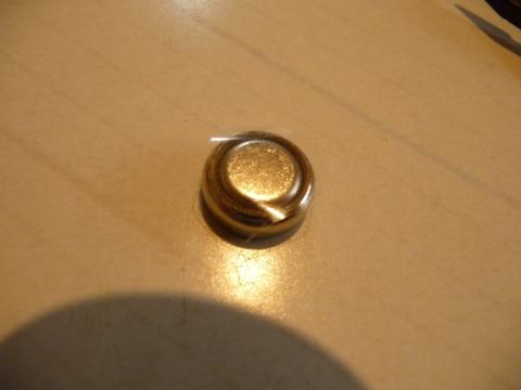 もともと、コスモトロンには、1.3Vの接点の小さい電池が入っており、互換がきくSR43WやLR43だと接点部分が大きくなるのですね。そこで周りの金属部分に短絡して、電池を押えつけると止まる状態のようです。