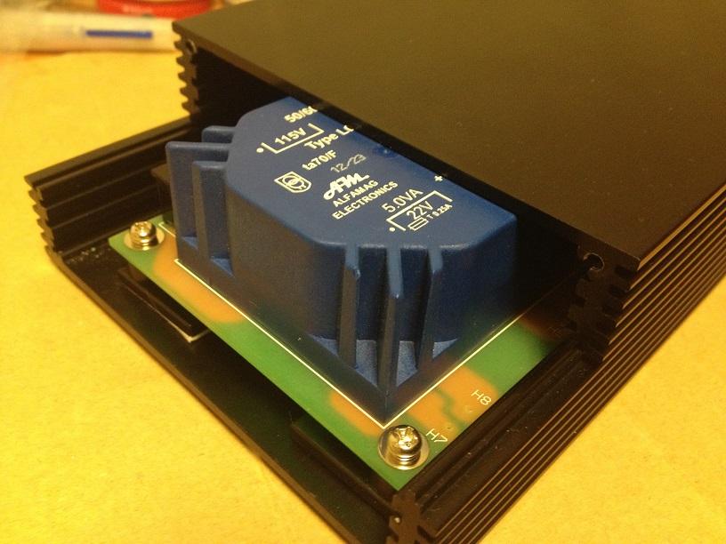 3端子レギュレータ用のヒートシンク、トロイダルトランス。