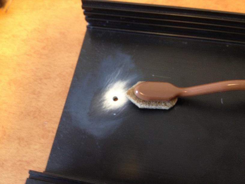 3mmのネジ穴を開け、内側の塗装をはがす。