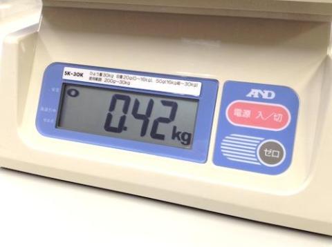 それまではアナログで100kgまで計れるはかり、いわゆる「体重計」を使用していました。体重計でも問題は無いのですが、容積の大きなものを計る場合に難儀します。