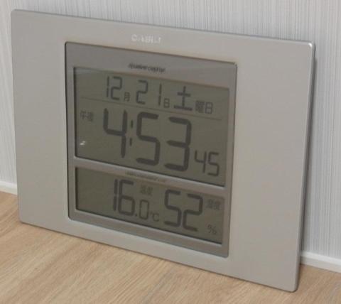 時計のほかに月日曜日と温度・湿度表示も