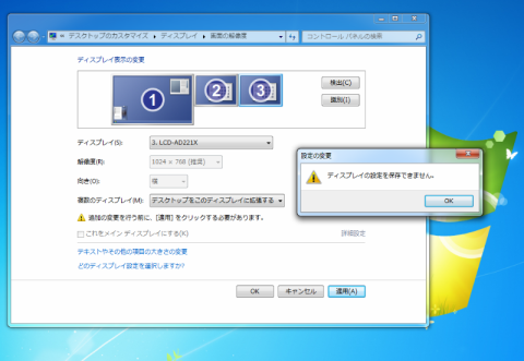 実際に使うときは1画面で使用しますが、DVI、HDMI、D-Sub の3画面同時表示ができるか試しました。