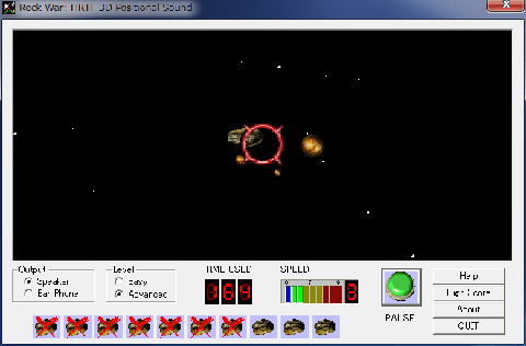 宇宙での隕石を爆破するゲームです 隕石が近づく方向に音を聴きながら