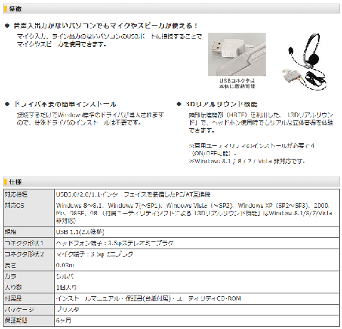 製品の特徴、仕様等 c-mediaチップを使用しているようです