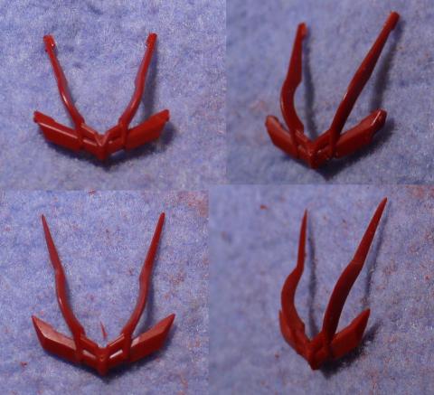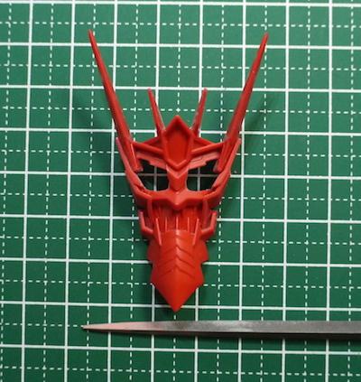 こちらが、戦国アストレイに装着される鬼の盾。目の部分にメタルパーツを埋め込むため、モールドにそって切り抜きをしました。