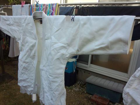 今の柔道着は洗うと縮んでジャストサイズになるとのことなので、とりあえず洗濯して様子を見ています。