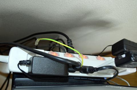 テーブルタップが長ければ6分配も有りですが、パソコン上に置くので