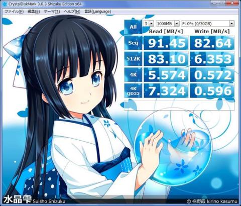 90MB/s、書き込みは1が90MB/s、2が60MB/s、HDが30MB/s