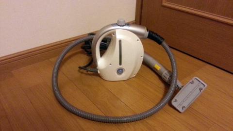 まず、取り外したカバーに洗剤を振りかけ、その後、これでスチームを当てます。これだけで結構な汚れを浮き上がらせます。その後にナイロンたわしでゴシゴシするだけで、簡単にお掃除できました。