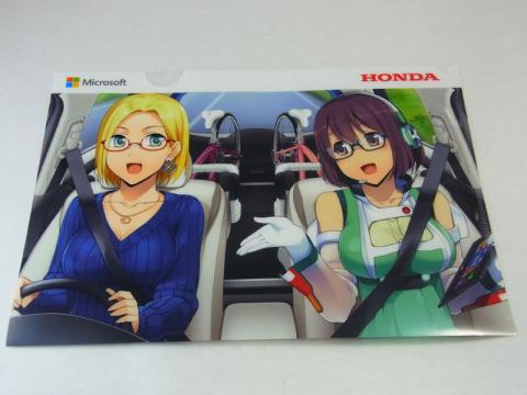 クリアファイル右上に翻る「HONDA」ロゴ。去年はこみPo!ってたが今度は自動車ですか。ちょろっと話を聞いたところによると前回のコミケでホンダの人が来たのが縁だとか。2人ともスタイルいいですね!