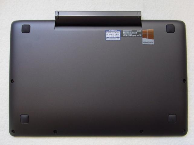 T100TAでは、ヒンジ部分が設置面との接点になり、キーボード面に傾斜がつくようになっている。これによりキーボードが打ちやすくなっている。