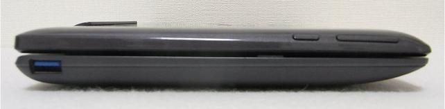 インターフェースを確認してみよう。左側面には、キーボードドッグ側にUSB 3.0×1、ディスプレイ側にWindowsキー、音量調整ボタンが配置されている。