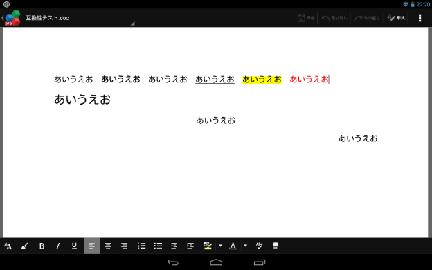 OfficeSuite上ではうまく表示されなかった斜体の表示を含め、すべての文字装飾が意図したとおりに再現されていた。