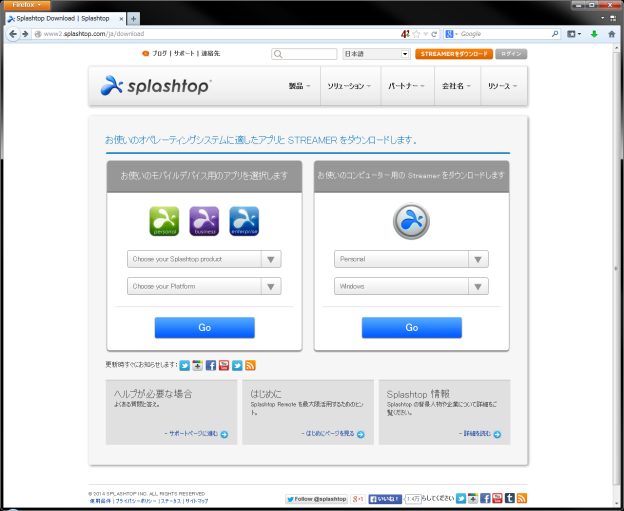 SplashtopはGoogle Playから、Streamerは公式サイトからダウンロードした。