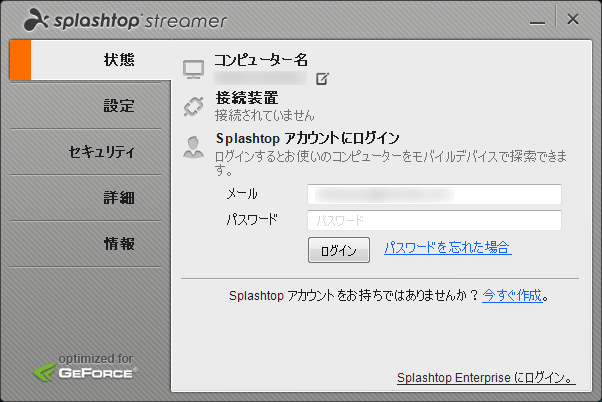 PCからStreamerを起動して、Splashtopアカウントを作成する。