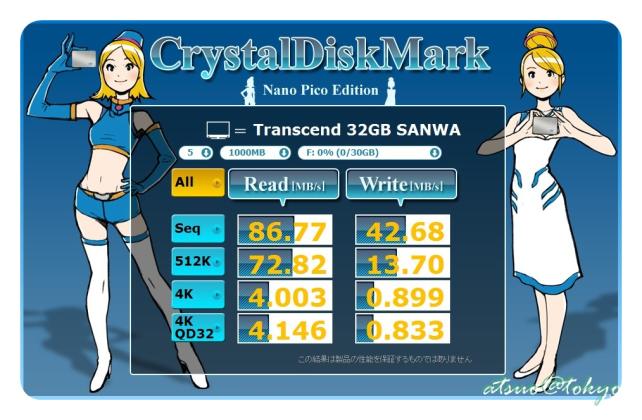SDカードのレビューでの結果よりシーケンシャルが若干落ちているものの、逆に他は全てこちらの方が若干上回っております。