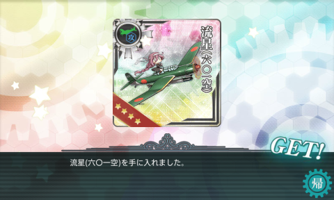 やっとでました。大鳳狙いは9回目でした。これでいないのは「矢矧」と「まるゆ」になりました。ひたすら最低レシピまわしかな。