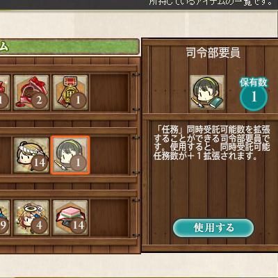 最低4隻で軽1隻と駆2隻と他1隻が必要 - 防空射撃演習 遠征時間40分 必要旗艦Lv4 ボーキサイト80 家具箱(小)0 or 1