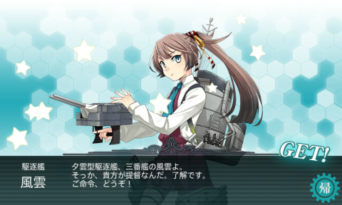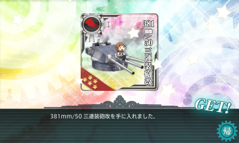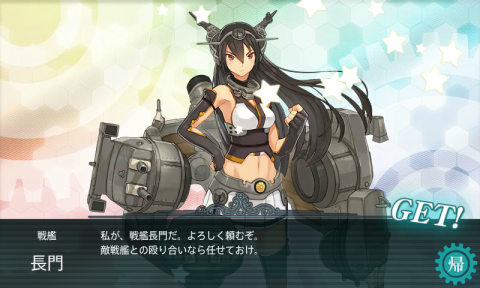 現在ドロップで入手可能な艦娘の最後の1つ、「長門」を入手。これでドロップで入手できる艦娘がすべて揃いました。