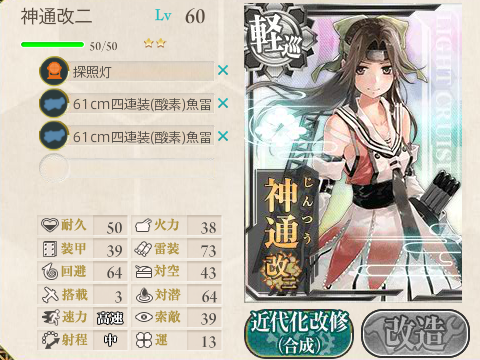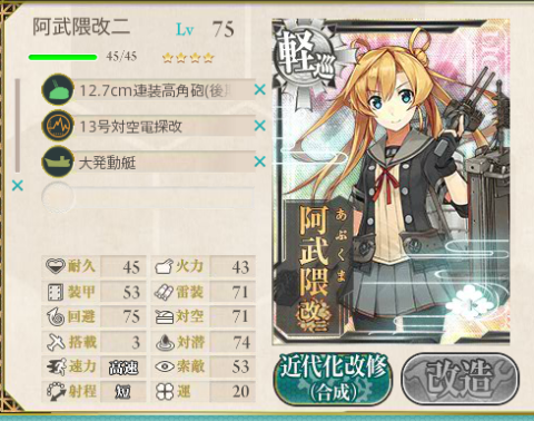 阿武隈改二 98 甲標的 15.2改max 2号max