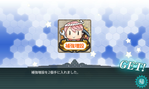 アップデートで課金要素がさらに追加されました。補強増設というアイテムが追加され補強増設改修を行う事でレベル30以上の艦娘に補強増設装備スロットを追加できます。補強増設装備スロットは、応急修理女神、応急修理要員、戦闘糧食、洋上補給用のスロットです。以前は応急修理女神と応急修理要員は普通のスロットに入れる必要があったため、装備すると弱くなるというデメリットが大きくて、使いどころが難しいアイテムでしたが、補強増設の追加でデメリットがなくなったので、使う事で難易度をかなり下げられるようになりました。ちなみに補強増設は1つ500円、応急修理要員は1つ200円、応急修理女神は1つ500円です。おそらく補強増設が売れるというより、今まであまり売れていなかった応急修理要員と応急修理女神が、たくさん売れるようになりそうです。