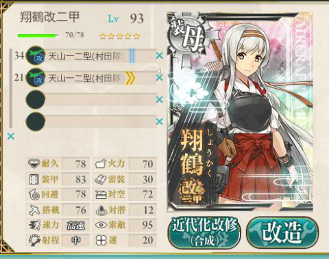 瑞鶴改二甲 零式岩本 烈風改 天山村田 彩雲