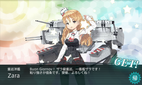 Zaraの長射程の砲はうまく使うと便利そうですが、本人は最初から長射程なので、使う必要があるのか謎ですね。フィット補正とかはあるんだろうか。