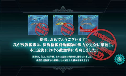 出撃14回、S9回、A4回、撤退1回でクリアしました。沖波はドロップしませんでした。