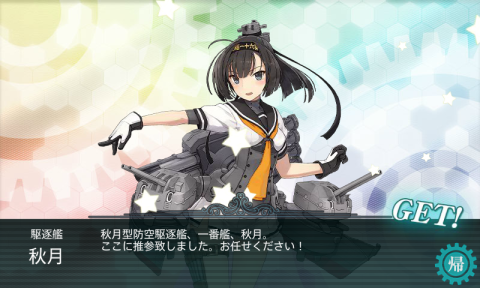 初月は他の秋月型と同じように、初期と改造のおみやげで10cm連装高角砲+高射装置を2つ持ってきてくれます。