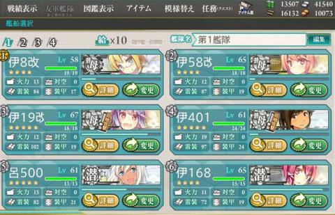 ドロップ海域が限られている上に、レア度も高めな潜水艦娘で上記添付画像のように、六隻編制の任務部隊を組むのは結構大変です。