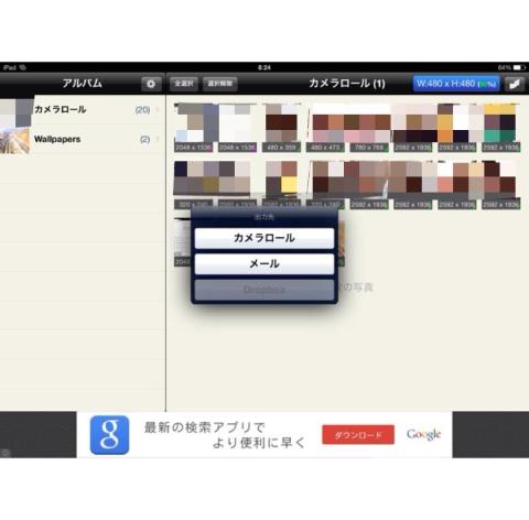 カメラロール内 メール Dropboxに保存というか出力可能になります。