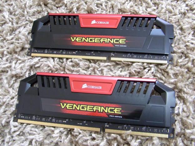 CMY16GX3M2A2400C11は、PC3-19200 (2400MHz)、容量16GB(8GB×2枚)のDDR3メモリ。カラーはレッド、ゴールドの2種類あるが、マザーの配色に合わせてレッドを選んだ。