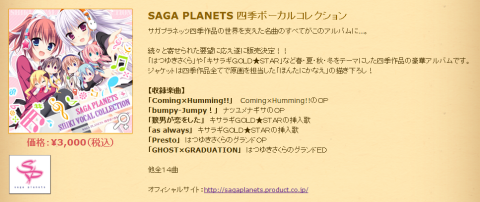 SAGA PLANETSの四季シリーズのボーカル曲がひと通り入っています。