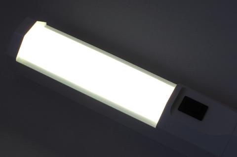 スポット的に光が当たらないので、写真撮影の照明にも使えそうです。表側は発光部とスイッチがあります。