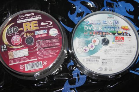 BD-REとDVD-Rのメディアが10枚ずつ。