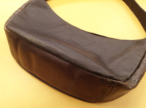 外側は全て本革で、本体は柔らかく肌触りの良い羊革のようで、サイドからショルダーバンドにかけては型押しではないモノホンのワニ皮を使用しています。