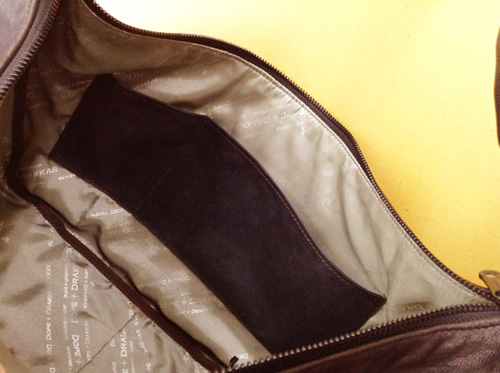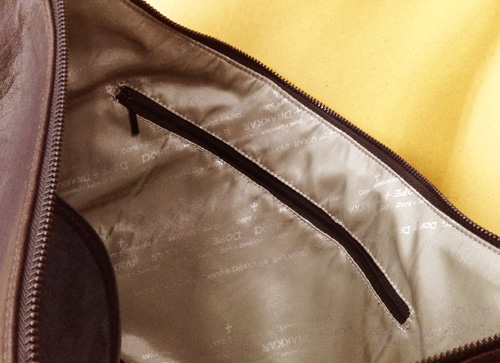 ここで、バッグの中をよくよく見てみると内張りの生地に「DOPE+DRAKKAR」と書かれていますよ!w まぁ、この辺は深く追求してはいけませんね。。。