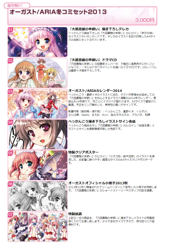 オーガストのコミケセットです。毎度おなじみのテレカ、ドラマCD、カレンダー、色紙が入っています。