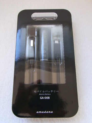 amadanaのオリジナル製品。コンパクトサイズのモバイルバッテリー。amadanaらしいシンプルなデザイン。USB-microUSBケーブル付き。4,280円で容量が2200mAhしかないので、割高な印象。