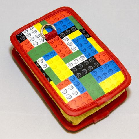 表と裏に LEGOブロックがプリントされた、LEGOデジカメにピッタリのキャリングケースです。