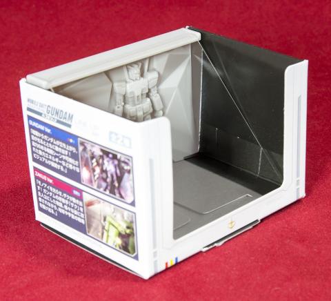 箱のフラップ部分を内側に折りこみ、フィギュアをセットします。