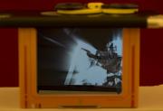 箱の中にクリアなプラ版を斜めに置き、上からスマートホンの映像をそこに写します。