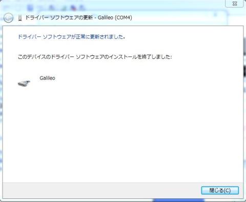 ドライバの更新ボタンををクリックし、さきほど解凍したフォルダ"C:\Galileo"を選択してドライバを更新。
