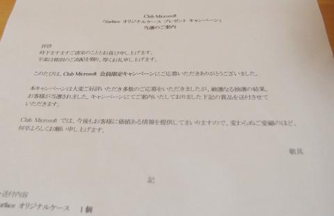 2013年11月28日~2014年1月6日の間にSurfaceをユーザー登録すると抽選で当たるキャンペーンで、見事当選しました。