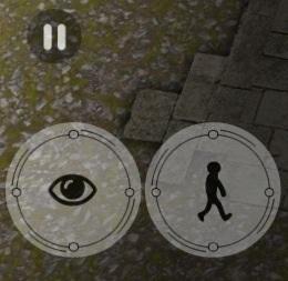 次に方向キーの上にある「目」のアイコンを選択すると視点移動モードになります。また、その隣の「人」アイコンを選択すると主人公が歩くモードになります。