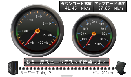 どちらにしろ、それほどスピードを求めても実際に使うのはeXternal(外部)から内部へ通信する速度は平均して~10Mbps程度です。